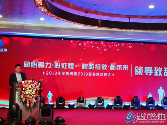 大会在公司总经理龙丞先生激情洋溢的新年献词中拉开了帷幕,他真情回顾了公司创立七年来的风雨历程,客观公正地总结了2018年的功过得失,全面系统地布署2019,最后向全体聚力人和来宾奉上最诚挚的新年祝福。他指出,公司一步一个脚印,一年一个新高度,聚力的快速发展,离不开全体聚力人的辛勤工作和社会各界的关爱及支持。2018年一年来,全体聚力人齐心协力,不畏艰险,攻坚克难,全面推进了公司的持续、健康发展,同时在前进中也存在不少问题和不良现象,并提出了改进要求,描绘了2019年公司的宏伟发展蓝图。