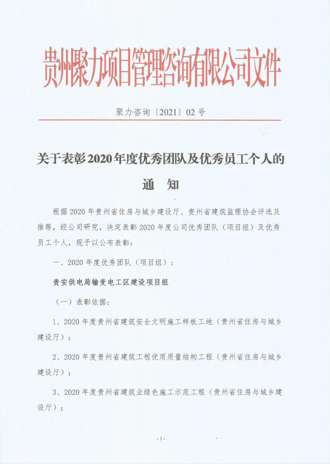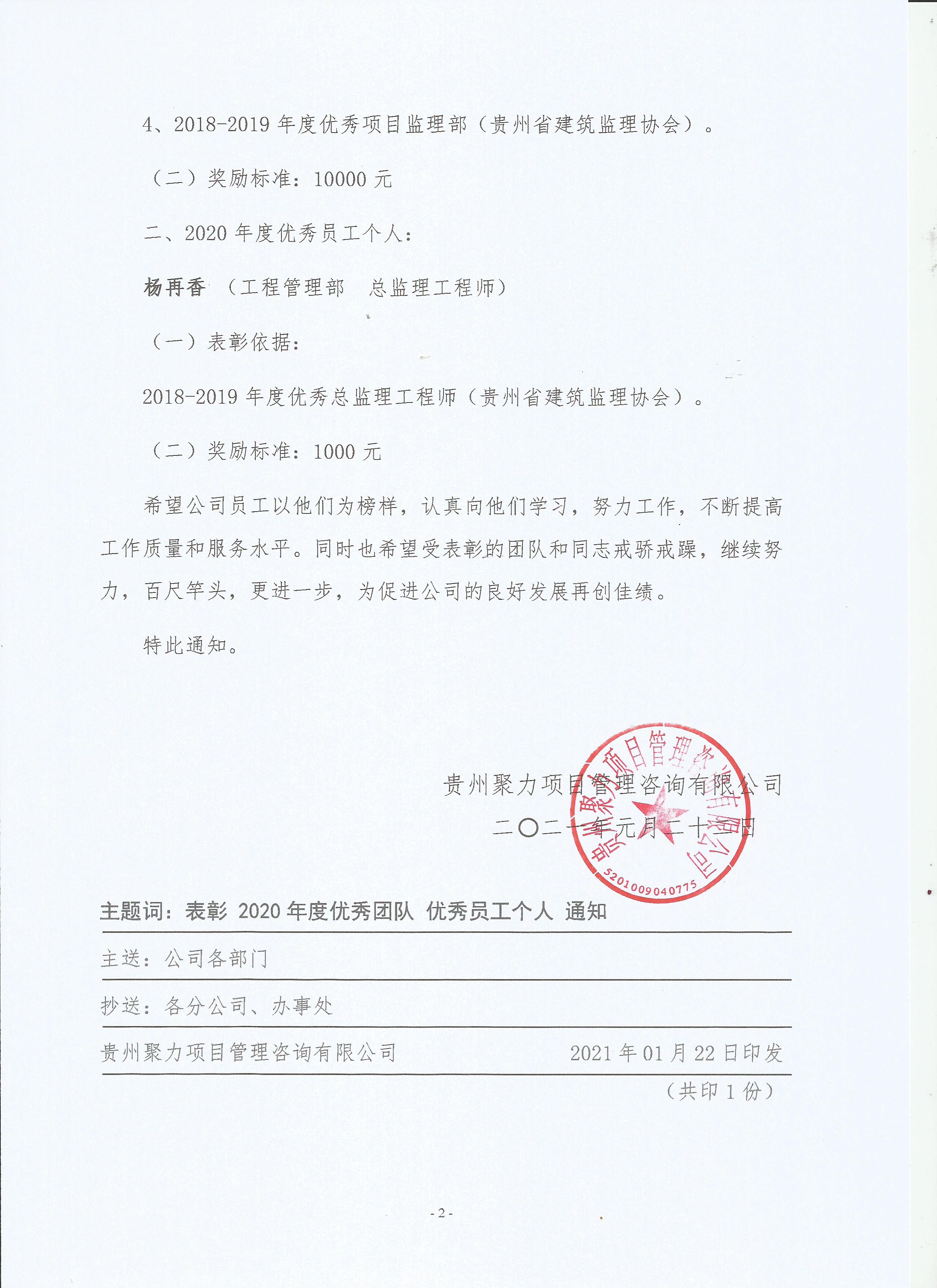 【喜报】关于表彰2020年度优秀团队及优秀员工个人的通知