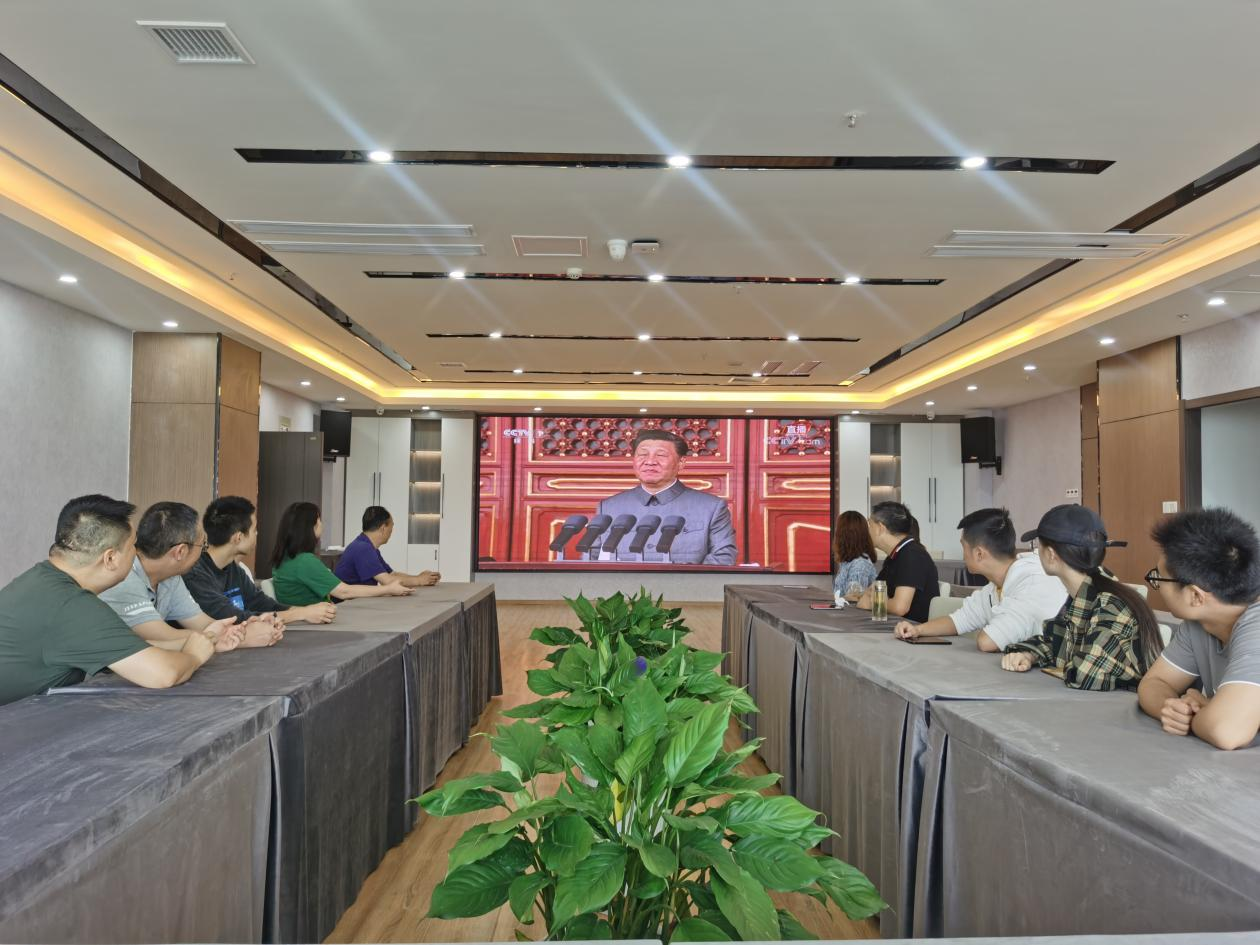2021年7月1日早上8:00,我公司综合管理部组织全体人员在公司多媒体会议室集中观看庆祝中国共产党成立100周年大会直播,亲身感知、感受庆祝建党100周年的浓厚氛围。